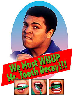 - Un concept album sorti en 1976 pour faire la promotion d’une bonne hygiène bucco-dentaire (!) : Ali & His Gang vs. Tooth Decay. Musicalement, c’est à ranger dans le bac « j’avais deux euros sur moi, je savais pas quoi en faire, et puis la couverture est vraiment trop kitsch, il me le faut ce disque ». Sinon, il y a quand même un titre qui sort du lot : Ali’s Historical Theme Song.
